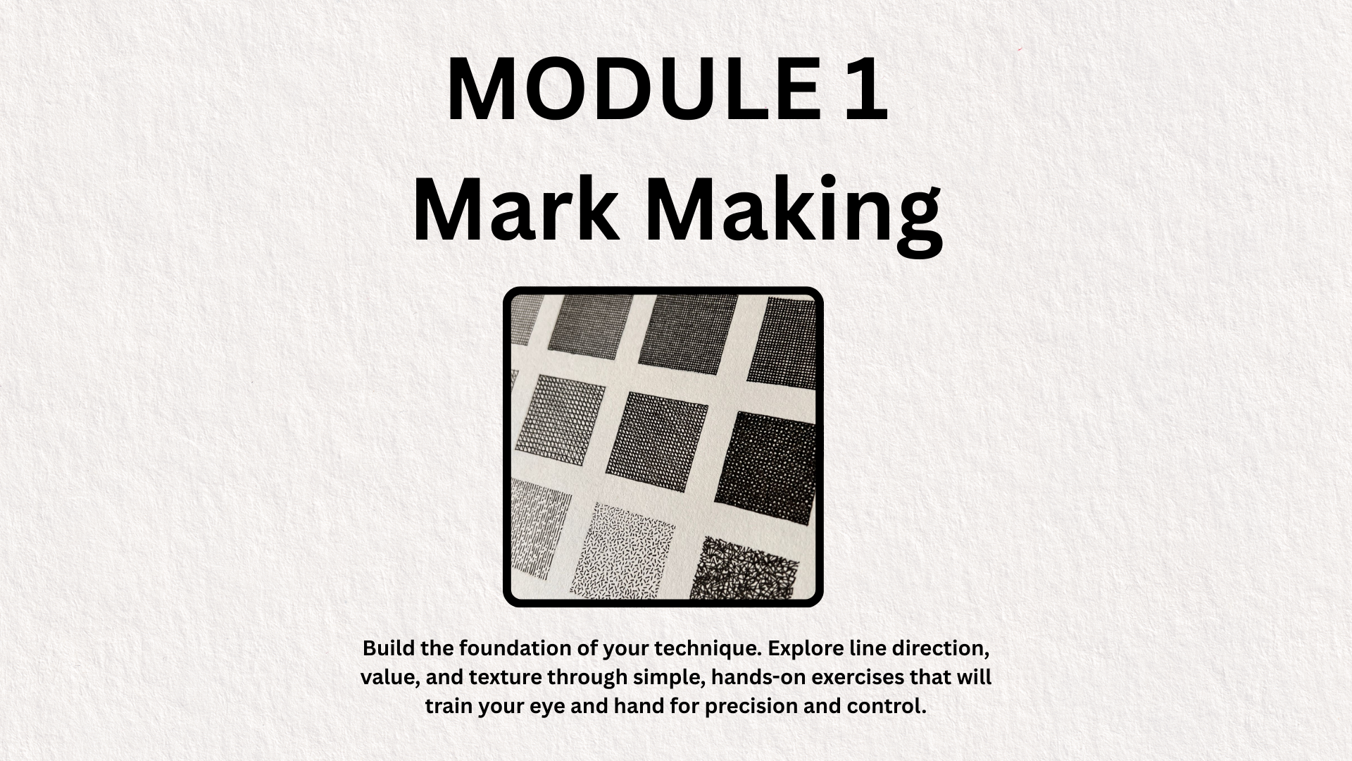 We'll cover Mark's essential supplies and specialized gear (pens, paper, and tools) and the fundamental practice for building precision, control, and texture in your drawings.